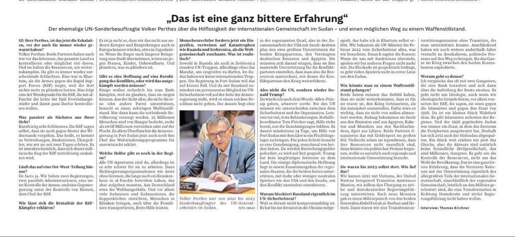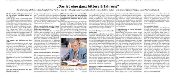 اهم ما جاء في المقابلة مع فولكر بيرتيس Volker Perthes المبعوث الأممي السابق إلى السودان في صحيفة ألمانية: