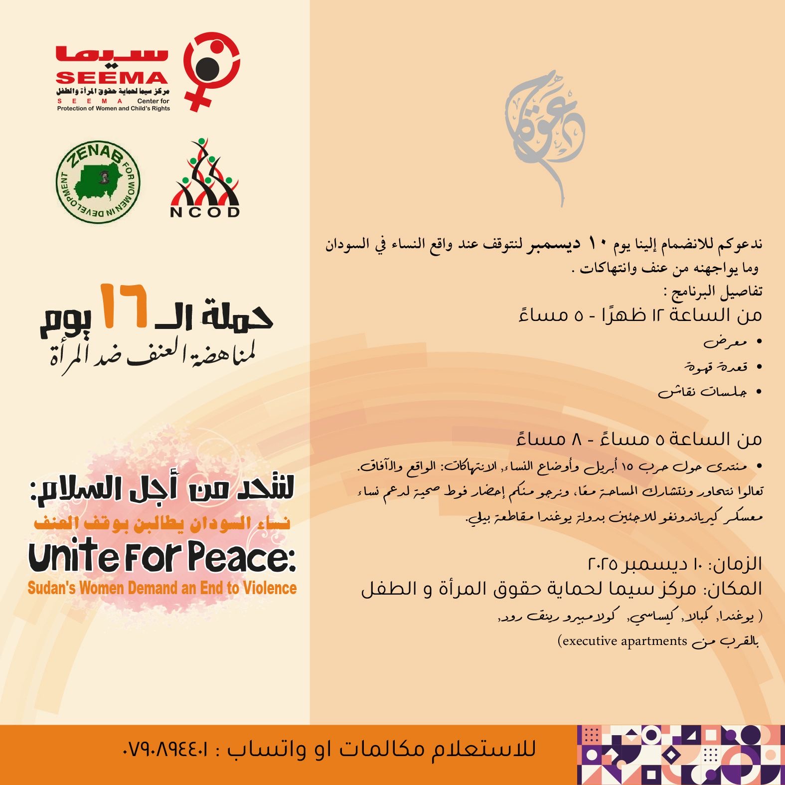 يتشرف مركز سيما لحماية حقوق المرأة والطفل – كمبالا بدعوتكم لحضور والمشاركة في فعالياتنا المتنوعة التي تم تصميمها لتكون منارة للوعي والعمل والتغيير.