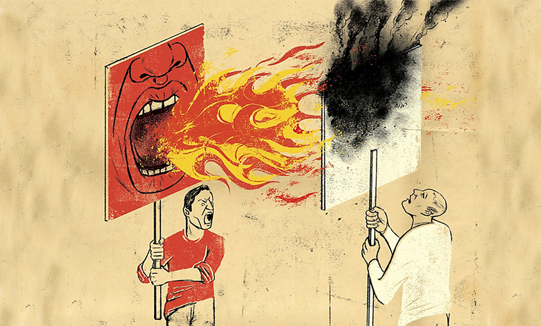 وبعدها يتم تغذية أحاسيس العداء والكراهية للآخر بأنهم ابناء الشيطان ويسعون لهدم الدين الذين هم حماته، ويتم الاحتفاء بهذا العداء تأسياً بالتاريخ بأن كل الدعاة والانبياء قد حاربهم الناس ولكنهم صمدوا بعون الله..!
